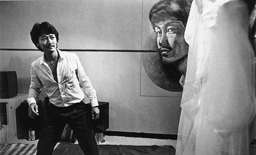 狄龍這張,他手上的照片是我叫他拿著的,是掛在墻上的黑白海報,有半人這么高,很重的。我叫他取下來,在家里扛著走。一直動,他就沒得擺造型了。
