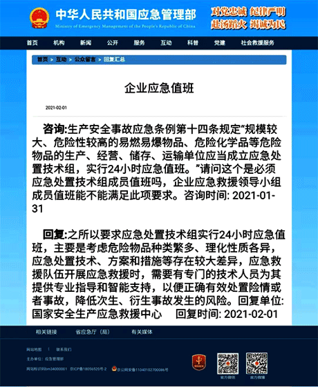 國家安全生產應急救援中心回復:之所以要求應急處置技術組實行24小時應急值班,主要是考慮危險物品種類繁多、理化性質各異,應急處置技術、方案和措施等存在較大差異,應急救援隊伍開展應急救援時,需要有專門的技術人員為其提供專業指導和智能支持,以便正確有效處置險情或者事故,降低次生、衍生事故發生的風險?;貜蛦挝? 國家安全生產應急救援中心 回復時間: 2021-02-01