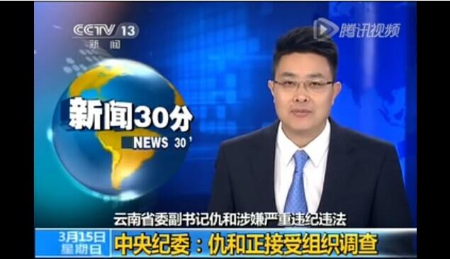 中紀委網站消息,云南省委副書記仇和涉嫌嚴重違紀違法,2015年3月15日接受組織調查