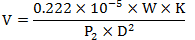以上公式中:M為流速(馬赫);W為流量(kg/h);K為1+(0.0013×過熱溫度);P2為出口側絕對壓力(kPaA);D為配管直徑(英寸);T1為進口側流體溫度(℃);Ts為飽和溫度(℃);過熱溫度=T1-Ts