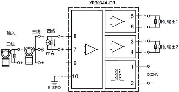 YR9034A信號隔離器融合信號隔離器和配電器功能為一體,可以接收電流源4-20mA信號,也可以接收來自二線制、三線制和四線制變送器的4-20mA信號,用戶用一臺儀表接不同端子就輕松實現各種功能需求。
