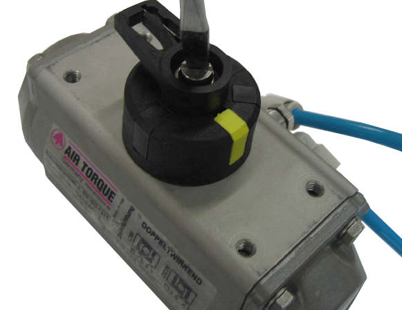 小心地把有安裝支架的定位器放到執行器上,使藕合輪的軸嵌入驅動器內