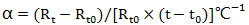 單位溫度變化引起電阻值的相對變化。Pt100元件和熱電阻的電阻溫度系數用α表示,即: