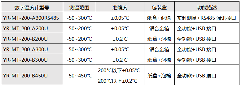精密數字溫度計選型表