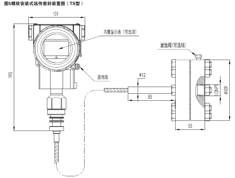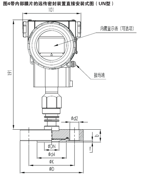 遠傳壓力變送器基本型遠傳密封裝置安裝式圖