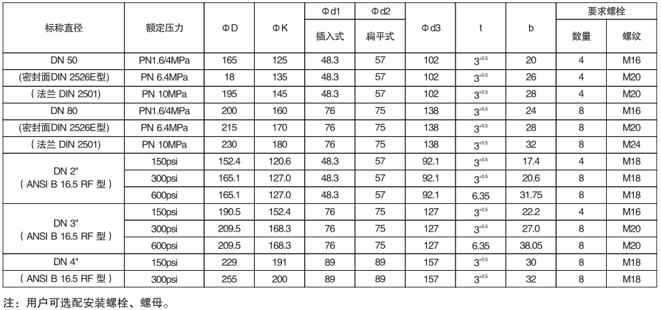 注:超出以上工作溫度和壓力關系范圍的應特別指出,可以通過特殊設計來滿足要求。