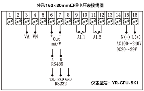 ⑥變送輸出(160×80mm儀表通訊和變送輸出不能同時存在;96×96mm和96×48mm儀表通訊和變送輸出可以復選)