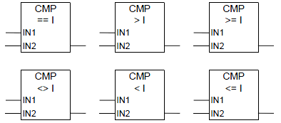 如果比較結果為“真”,則函數的RLO為“1”。如果以串聯方式使用該框,則使用“與”運算將其鏈接至整個梯級程序段的RLO;如果以并聯方式使用該框,則使用“或”運算將其鏈接至整個梯級程序段的RLO。