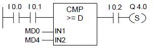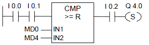如果比較結果為“真”,則函數的RLO為“1”。如果以串聯方式使用比較單元,則使用“與”運算將其鏈接至梯級程序段的RLO;如果以并聯方式使用該框,則使用“或”運算將其鏈接至梯級程序段的RLO。