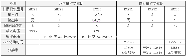 ④模擬量輸入擴展模塊 EM231(3AI,A/D轉換時間為25μs,12位);