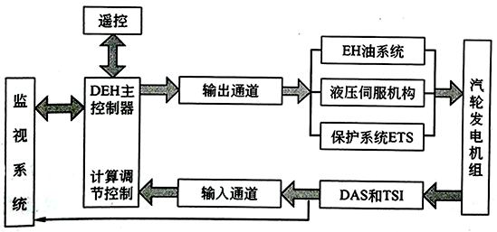 數字電液控制系統(Digital Electric-Hydraulic Control System,DEH)是保證汽輪機經濟運行必不可少的條件。汽輪機DEH的任務是根據控制指令(目標轉速、負荷及其變化率),控制運行方式、閥門試驗方式、機組狀態參數和轉速、發電機功率等被控量,通過數字控制器輸出控制信號,經與反饋信號比較后,其偏差經過伺服放大后,送到電液轉換器,自動控制進汽量,以改變蒸汽轉矩,在轉速改變不大的情況下,達到新的平衡,以適應外界負荷或蒸汽狀態的變化。