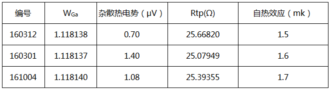 絕緣電阻值已達規定的指標。Rtp值、自熱效應均由中國計量科學研究院測定,數據見表2。表2中,自熱效應為通過1mA電流時在水三相點處測得的溫升。雜散熱電勢是溫度計置于鋁凝固點時測得的。