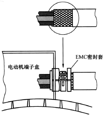 圖4 通過EMC屏蔽實現與電動機端子盒的屏蔽連接