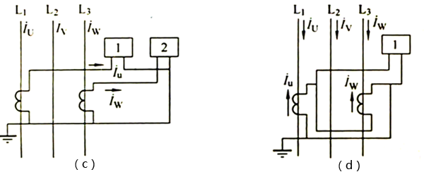 圖2(c)為電流互感器兩相V形接線 圖2(d)為電流互感器兩相電流差接線