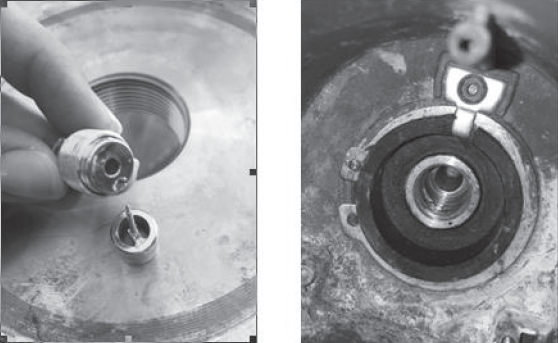 在2016年6月份已安裝到位的液位計,發現5臺投用后多次標定,顯示偏差均在30%-60%之間,罐號為934#、966#、965#、903#、935#罐,介質均為汽油罐?,F場外觀檢查發現5臺雷達液位計防爆外殼玻璃表蓋上有水珠,防爆外殼缺葛蘭頭、缺密封堵頭、密封堵頭與葛蘭頭安裝接口調換位置,兩個接口的螺紋不一樣,堵頭絲扣未擰到位;將雷達液位計拆回進行檢查標定。當拆卸下編程器表頭和傳感器后,發現這5臺表體底部均有不同程度腐蝕現象,如圖9所示,初步判斷為進水所致。