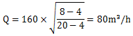 [計算實例1]某差壓變送器的量程為0-40kPa,對應的流量為0-1603/h,輸出信號為4-20mA,差壓變送器輸出電流為8mA時,流量應該是多少?差壓又是多少?