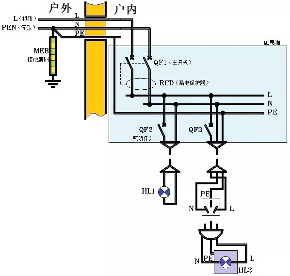 1、在戶外,配電系統引來一條火線(相線)和零線。其中零線做了重復接地,然后分開為中心線N和地線PE,隨同相線L一同入戶。至于火線到底是三相中的哪一條,與居家的配電和用電毫無關系,任意一條都可以。 從零線重復接地點開始往后,包括入戶之后的系統,零線PEN就不存在了!?。?/span>