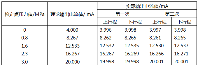 檢定點壓力值/MPa|輸出電流/mA