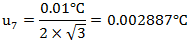 采用B類方法評定。恒溫槽在其溫場的最大水平溫場不超過0.01℃,按均勻分布,取k=