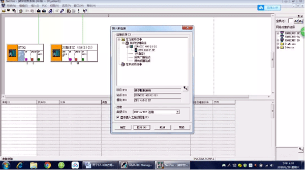 分別選中網絡組態中的CPU,點擊鼠標右鍵,插入一個新的網絡鏈接,如圖所示