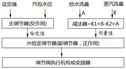 圖2 鍋爐汽包水位三沖量串級調節控制策略