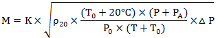 ◆輸入信號為差壓(△P,未開方,溫度補償),質量流量計算公式: