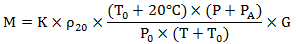 ◆輸入信號為流量(G,無補償),質量流量計算公式:M×ρ×G
