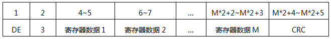 CRC:校驗字節,采用CRC-16循環冗余錯誤校驗