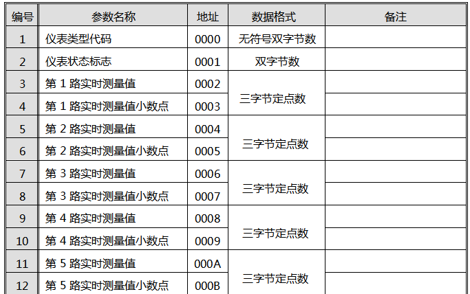 SWP-MD80多路巡檢儀動態數據格式(MODBUS_RTU協議)