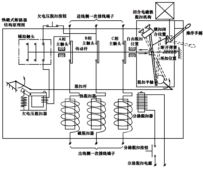 圖1 帶熱磁式脫扣器的斷路器結構原理圖