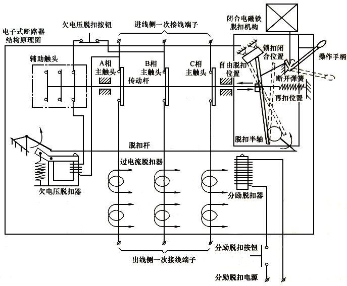 圖2 帶電子式脫扣器的斷路器結構原理圖