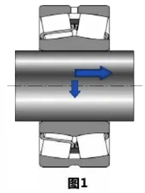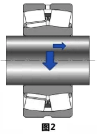 圖2所示為我們通常比較好理解的受力情況,軸承承受較大的徑向載荷,而軸向載荷的值較??;圖1則反映的是另外一種情況,尤其是在垂直軸的應用中,軸承所承受的軸向載荷遠大于徑向載荷(大于某個特定的比例,在后續的文章中會詳細介紹)。
