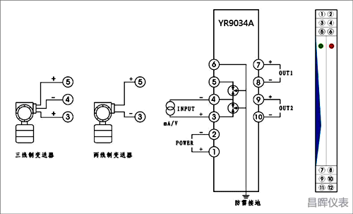 以昌暉0.1%精度高性能YR9034A-0-GGNN-N型一進二出、模擬量輸入信號隔離器為例: