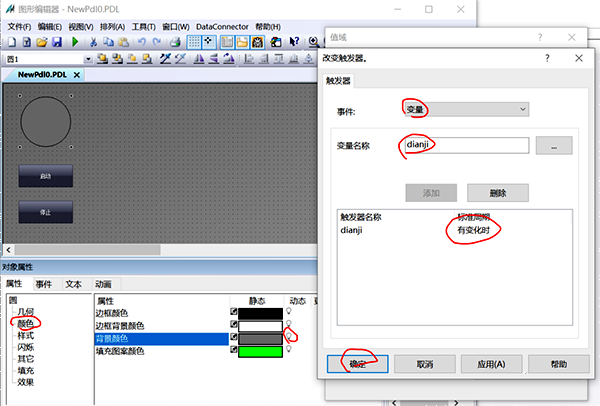 9、“顏色”-右鍵燈泡選擇“動態對話框...”-填入相關設置-“確定”