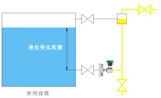 1、測量密閉容器液位時,液位變送器法蘭應安裝在最低液位的同一水平線上測量變化的液位,單法蘭液位變送器不用進行遷移。
