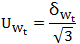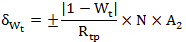 以式(5)計算得到的δWt作為數表準確度對確定Rt(即Wt)引入的不確定度來源。估計其分布來自公式(1)中的第一項標準不確定度分量,如作均勻分布對待,則