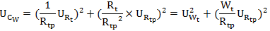 公式(1)中:Ucw為測量比值Wt的合成標準不確定度;URt為測量Rt時引入的標準不確定度分量;URtp為測量Rtp時引入的標準不確定度分量;UWt為測量Wt時引入的標準不確定度分量。