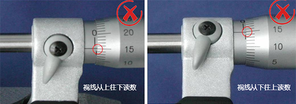 如果像(a)或(c)那樣有傾斜角度去讀數(如下圖),會受到視覺偏差的影響無法讀取刻度的正確位置,造成讀數錯誤。