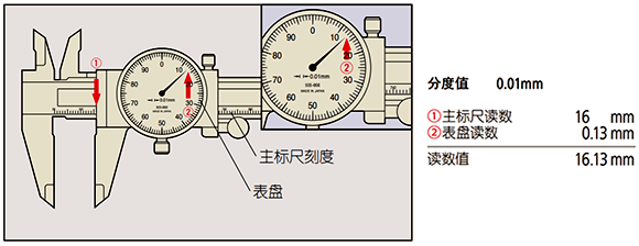 可以像上圖那樣讀取到分度值0.01mm,也可以像下圖所示那樣,讀取分度值到0.001mm。