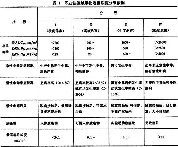 并且在該標準中,首次將危險化學品的毒性劃分成Ⅰ級(極度危害)、Ⅱ級(高度危害)、Ⅲ級(中度危害)、 Ⅳ級(輕度危害)。劃分依據如下: