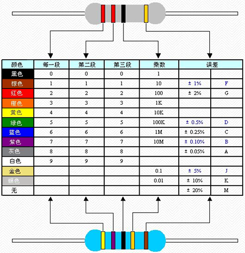 四環電阻:因誤差環的色環只有金色或銀色,色環中最后一環為金色或銀色環肯定是第四環。