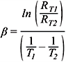 為了將電阻轉換為攝氏度,通常使用β值。知道兩個溫度點以及每個溫度點對應的電阻,便可確定β值。