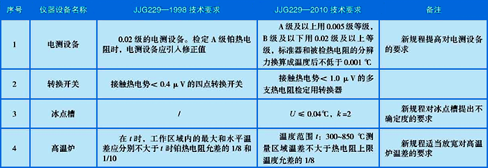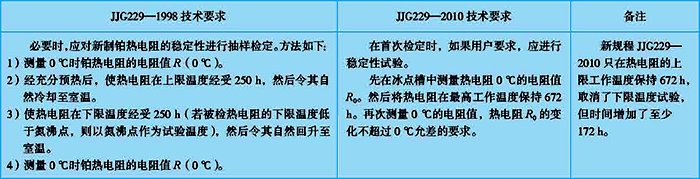 工業鉑、銅熱電阻作為測溫儀器,近幾年的制造工藝又有了很大的提高,為了適應形勢的發展,2010年9月國家質量監督檢驗檢疫總局發布了新的工業鉑、銅熱電阻檢定規程JJG229-2010,它替代了JJG229-1998檢定規程。通過學習,將這兩版檢定規程的主要改變,歸納為以下幾點。