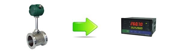 例2:渦街流量計測量氣體流量,頻率輸出,無補償。系統有關技術數據如下: