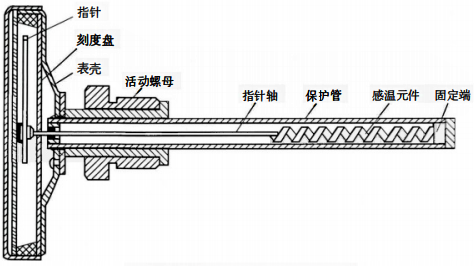 雙金屬溫度計外形結構如下圖所示。