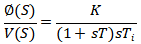如果受控系統是基于恒定勵磁(例如永磁體)的直流電機的伺服機構,則可以通過簡化的傳遞函數來描述,在s域中電壓的角位移為: