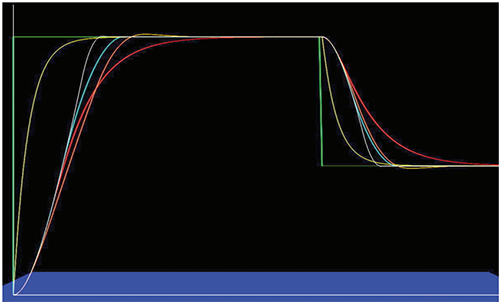 圖8還展示了各個控制系統的運行情況。第一個是最佳調諧的PD控制器,它對階躍函數做出即時反應。它的KP參數設置為5。但這實際上只是一個理想的PD控制。這些實際最佳調諧PD控制器具有有限驅動變量,其行為如紅色曲線所示。與其它控制器相比,它實際上是表現最差(最慢)的。然而,如果調整得當,它不會超調,這在某些應用中可能非常重要。