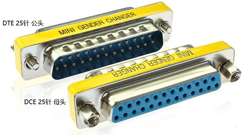 在F版本之前,RS232使用25針串行接口,分為公頭(Male)和母頭(Female)兩種,公頭用于DTE設備,母頭用于DCE設備,如下圖所示: