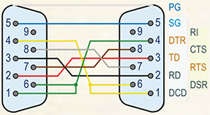 這種DTE直接連接,不經過DCE的連接也稱為“ null modem”連接,這類電纜稱為“null modem”電纜或交叉電纜。