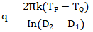 式中q為每單位長度儀表測量管道的熱損失(實際需要的伴熱量),W/m;Tp為要求的維持溫度,℃;T為最低設計環境溫度,℃;D2為保溫層外徑,m;Di為保溫層內徑,m;h為保溫層導熱系數。
